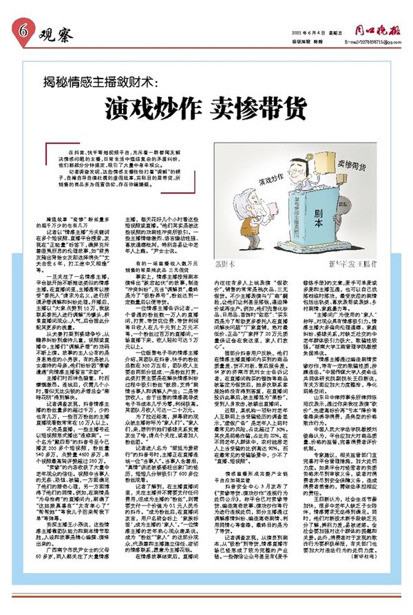 记者调查发现,这些情感主播往往打着“调解”的幌子,自编自导自演杜撰的虚假故事,实际目的是带货,所销售的商品多为假冒伪劣,存在诈骗嫌疑。