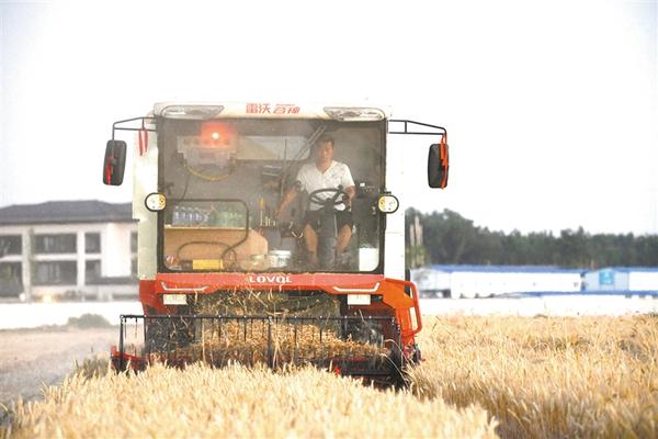 6月5日是芒种节气,市经济技术开发区的农民趁晴好天气,用大型收割机抢收小麦,麦田里机声隆隆,一车车金黄的麦子归囤入仓。