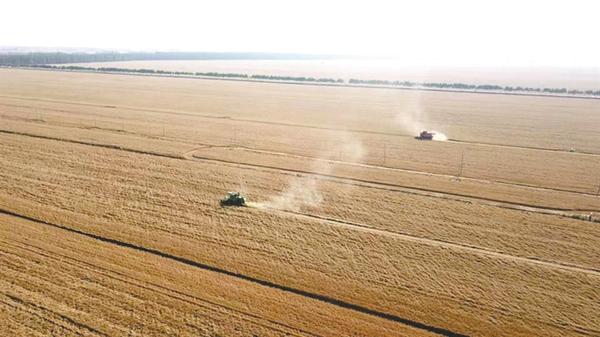 “今年又是丰收年,经测产,平均亩产650公斤,比去年略有增长。”黄泛区农场九分场场长李树民介绍,趁着好天气,农场里“人停机不停”,预计6月7日就能将10万亩小麦收割完毕。