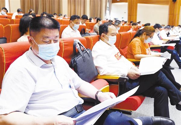 6月10日上午,市四届人大六次会议隆重开幕,代表们在开幕式上认真听取政府工作报告。记者 孙安平 王映 摄
