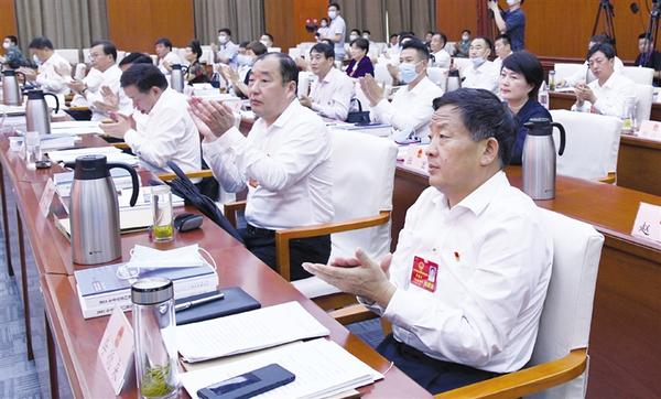 6月10日上午,市四届人大六次会议开幕,会上市长丁福浩所作政府工作报告亮点纷呈、催人奋进,赢得了与会代表阵阵热烈掌声。记者 孙安平 王映 摄
