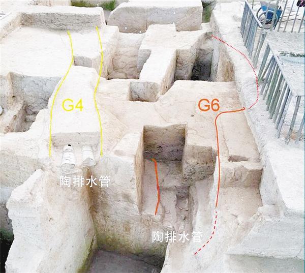之后,考古队新发掘出四组龙山时期陶排水管道,其中两组位于南城门附近。2019年,又在城内高台式排房的室外垫土之下发现两组东西向敷设的陶排水管道。这些陶排水管道,向西联通这座古城的中轴线。这些陶排水管长35到45厘米,表面装饰篮纹、绳纹和方格纹,两端有子母口,节节套合,构思精巧,它们或纵穿城墙基础,或沿排房建筑的外缘平行分布,两端有进、出水口,与城内的东西或南北向的排水沟相连通,是目前国内发掘的年代最早、最为完备的城市排水系统,对于研究我国早期城市的水资源管理系统具有重要的意义。根据发现的陶排水管道的情况,我们可以大致推测,平粮台城址可能受到过水患,当时先民始终关心如何把城内积水排到城外。