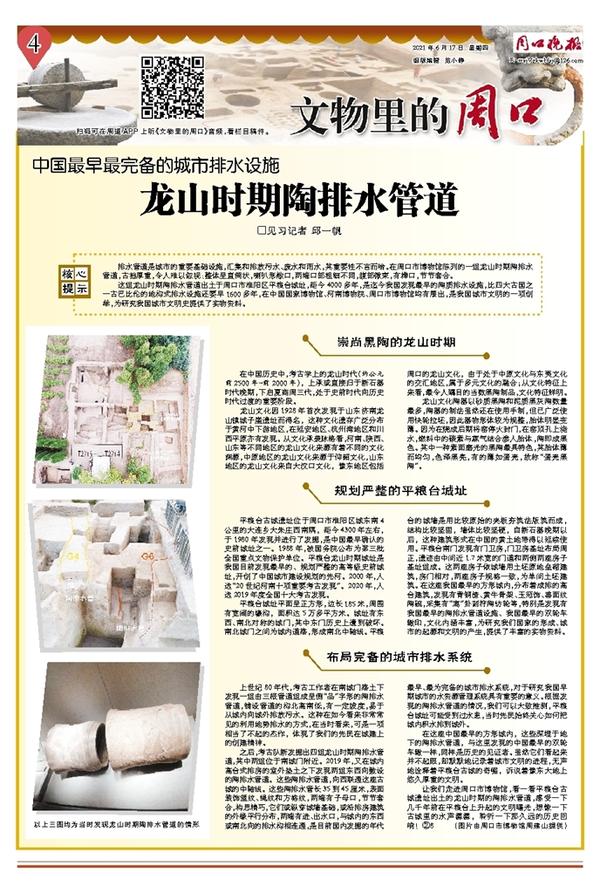 在这座中国最早的方形城内,这些深埋于地下的陶排水管道,与这里发现的中国最早的双轮车辙一样,同样是历史的见证者。虽然它们看起来并不起眼,却默默地记录着城市文明的进程,无声地诠释着平粮台古城的奇崛,诉说着豫东大地上悠久厚重的文明。