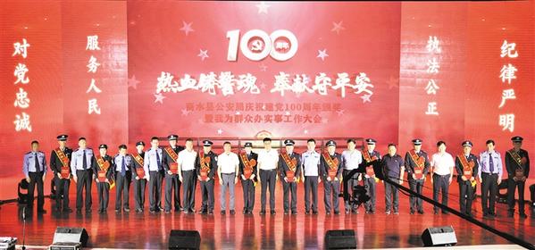 本报讯 6月15日16时,商水县公安局在县影剧院集会,以晚会形式表彰在专案侦破中表现突出的优秀民警,用骄人的战绩庆祝建党100周年。