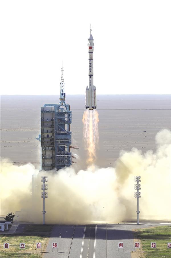 2021年6月17日9时22分,搭载神舟十二号载人飞船的长征二号F遥十二运载火箭,在酒泉卫星发射中心准时点火发射,约573秒后,神舟十二号载人飞船与火箭成功分离,进入预定轨道,顺利将聂海胜、刘伯明、汤洪波3名航天员送入太空,飞行乘组状态良好,发射取得圆满成功。新华社记者 李刚 摄
