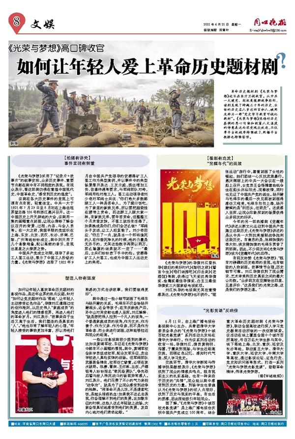 革命历史题材剧《光荣与梦想》近日在东方卫视收官。从中共一大建党,到抗美援朝战争胜利,该剧呈现了跨越三十年的历史,出场的历史名人多达四百余人,被网友称为一部“党史学习教育可视化教材”。《光荣与梦想》凭借对历史基调的悉心勾勒和极富人文温度的诗意表达而深受观众欢迎,不仅单平台收视率持续破2,网播平台数据也持续登顶。