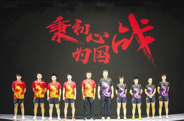 6月23日,中国乒乓球队奥运全新战袍在山东威海举行的发布会上正式亮相。新华社记者 朱峥 摄