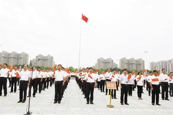6月25日,鹿邑县文化中心广场上,全体党员手持党旗和国旗,重温入党誓词。当日,为庆祝中国共产党成立100周年,在全社会大力营造爱党信党跟党走的浓厚氛围,彰显党的强大凝聚力和号召力,该县举行新党员入党宣誓和党员重温入党誓词活动,3500余名新老党员整齐列队、身着正装、佩戴党徽,面对党旗庄严宣誓,深情抒发对党的热爱与赞美。③6记者 李瑞才 摄