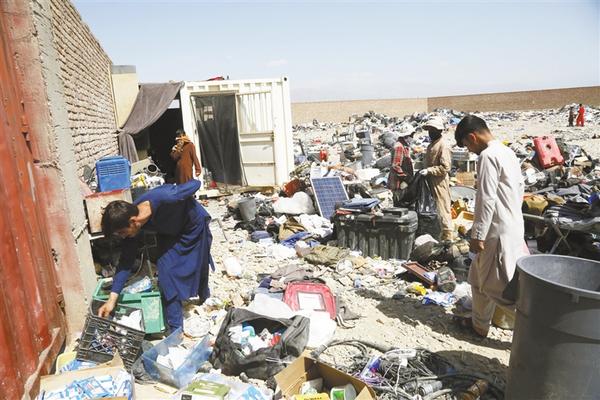 7月3日,在阿富汗帕尔万省的巴格拉姆空军基地附近,当地居民在美军遗留下的物品中回收废旧物。 阿富汗国防部发言人福阿德·阿曼2日说,美国和北约军队日前已全部撤离巴格拉姆空军基地,该基地已正式移交给阿富汗军队。巴格拉姆空军基地位于阿富汗帕尔万省,距喀布尔约50公里。新华社发