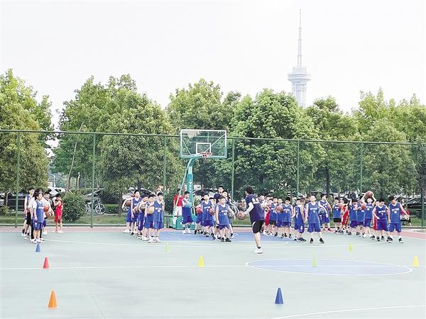 奥盾篮球训练中心的王教练告诉记者:“来我们这儿学篮球的都是5岁至16岁的孩子,训练期为40天。今年每班大约招了40名学生,相比去年有很大提升,去年每班才30人左右。为了防止中暑,上课时间设置在早晨或者傍晚,可以根据自己的时间灵活安排。”