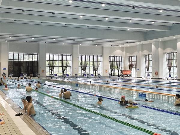 7月13日上午,记者来到周口市游泳馆,看到两个游泳池内均满池,有家长教孩子游泳的,也有教练教孩子游泳的,一群孩子正在教练的指导下上游泳课,穿蓝色制服的安全员正在认真地巡视着。记者随机询问了一位家长王女士,她高兴地告诉记者:“夏天学习游泳,既凉快消暑,又能锻炼身体。我家孩子开学就上四年级了,学业负担还不是很重,想着趁暑假让她多学点技能。她的游泳课今天就结束了,12天的课程,孩子学会了蛙泳、自由泳,真是没有白来。”