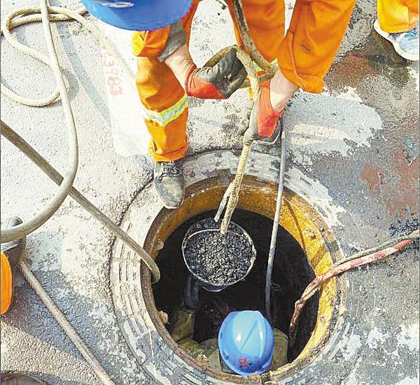 上图为启动应急排涝泵车,打开井盖加快排水。右图为城管部门组织专业人员对沿线道路开展管道清淤。记者 彭慧 摄