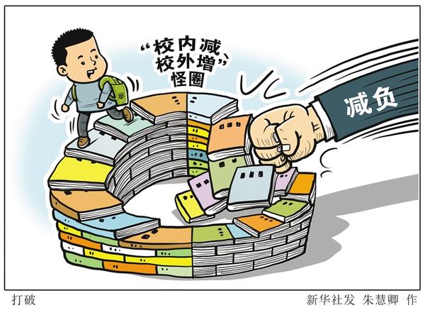 虽然中小学校不断探索尝试为学生减压、减负,但家长加压、校外补的现象依旧突出,一些孩子不得不“负重前行”。 切实为中小学生减负松绑是一项长期任务、系统工程,需要政府、学校、家庭、社会联动,久久为功。新华社发 朱慧卿 作