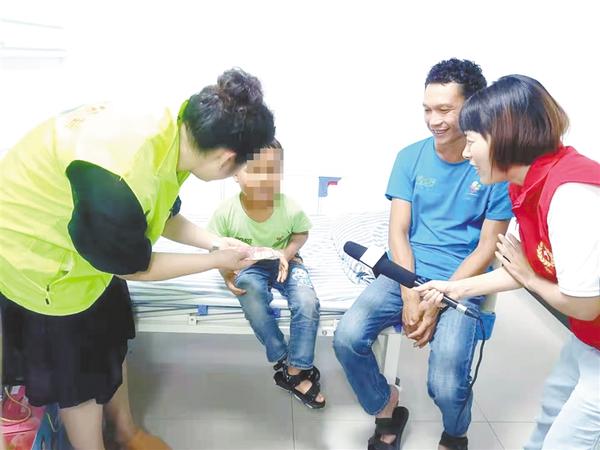 7月20日下午,周口市慈善总会萤火虫公益爱心人士,前往周口烧伤医院看望云南烧伤儿童小乘银,并送去慰问品和善款。小乘银一直是周口萤火虫公益关注的对象,几年来,周口萤火虫公益持续对他进行援助,送去善款将近3万元。记者 史书杰 摄