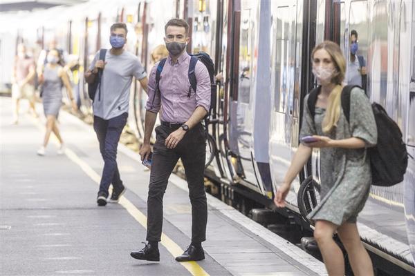 7月19日,通勤人员抵达英国伦敦的滑铁卢火车站。