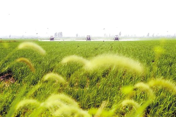 近日,安徽省阜阳市颍上县农民抢抓农时,开展水稻田间管理作业,为丰收打好基础。