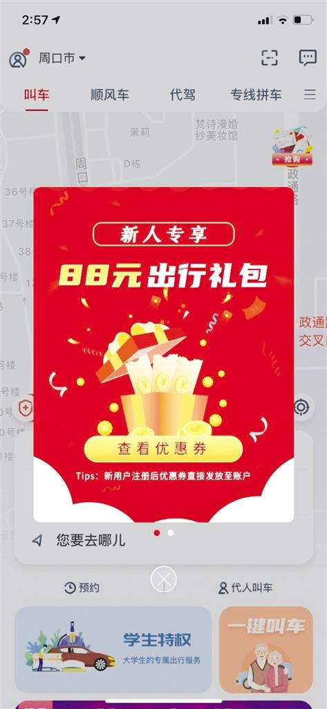 市民张女士平日出行打车用的是滴滴,最近,她尝试着用了其他APP。“听朋友说,这个APP优惠力度较大,同样是10公里左右的路程,由于有新人补贴,还有优惠券可以领,用滴滴要20元左右,用这个花了12.5元,的确省了不少。”