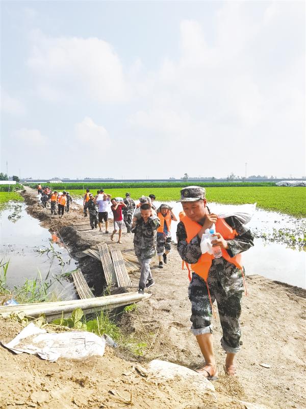 民兵们扛起麻袋,加固堤岸。由于洪峰到来,西华县清水河水位上涨迅猛,部分堤坝被雨水冲刷,洪水进入村庄。西华县大王庄乡武装部迅速行动,先后组织30余人应急排基干民兵组成防汛抢险分队,奔赴防汛抗洪一线,铲土、装沙袋、背沙袋,加固堤坝,竭力保卫共同的家园。③5
