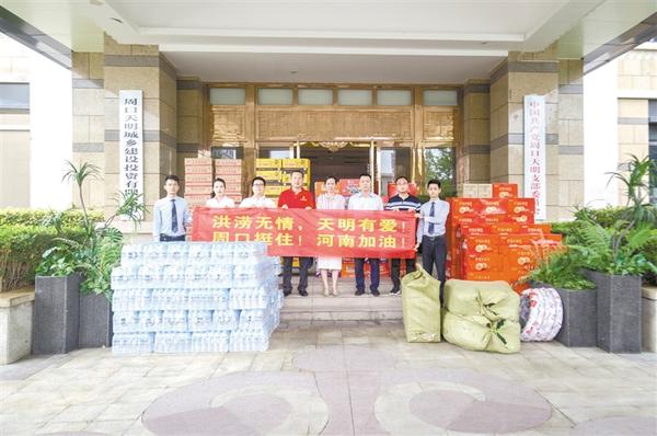 目前,河南多地水患还未结束,灾区的重建工作依然严峻。作为立足周口地区而发展起来的周口天明城乡建设投资有限公司,将持续关注灾区需要,积极奉献爱心,为灾后重建工作贡献天明人的一份力量!洪涝无情,天明有爱!周口挺住,河南加油!