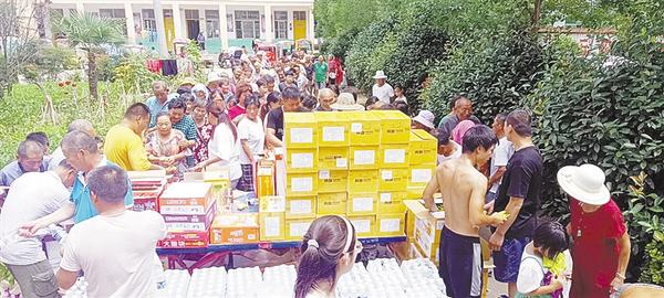“这里虽然人多,但管理得好,我们在这里有吃有喝,晚上还有文艺节目!”在一旁的另一位转移安置群众接过话茬说,“就是嘞,吃得不错,有胡辣汤、小油条、大烩菜、稀饭、馒头,比俺自己做得都好吃!” 截至7月28日下午,闫营村民已在西华县清河驿乡三马小学安置点这个临时“大家庭”里居住了整整一个星期。