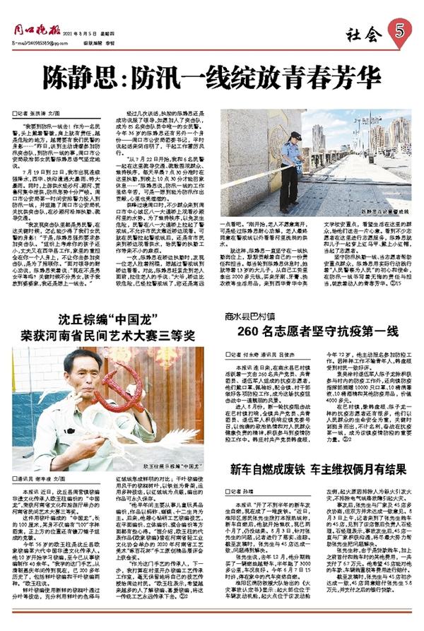 本报讯 近日,沈丘县周营镇棕编非遗文化传承人欧玉柱编织的“中国龙”,荣获河南省文化和旅游厅举办的河南省民间艺术大赛三等奖。