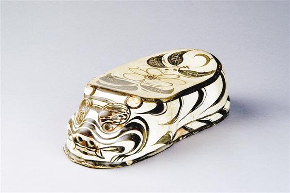 陶瓷枕始见于隋唐,种类有青瓷、白瓷、绞胎、三彩等,宋金元时期还烧造出现了兽形枕、建筑枕和人形枕。枕的用途有三种,医用脉诊、实用枕、随葬用枕。实用瓷枕造型丰富,纹饰图案多样,刻画内容寓意吉祥,或祈求科举顺利,或祈望健康长寿,或祝福婚姻美满,或期盼人丁兴旺,或期盼生活富裕,均表达了人们对美好生活的追求和向往。自然,这只来自金代的小老虎,同样会许你一枕吉祥。
