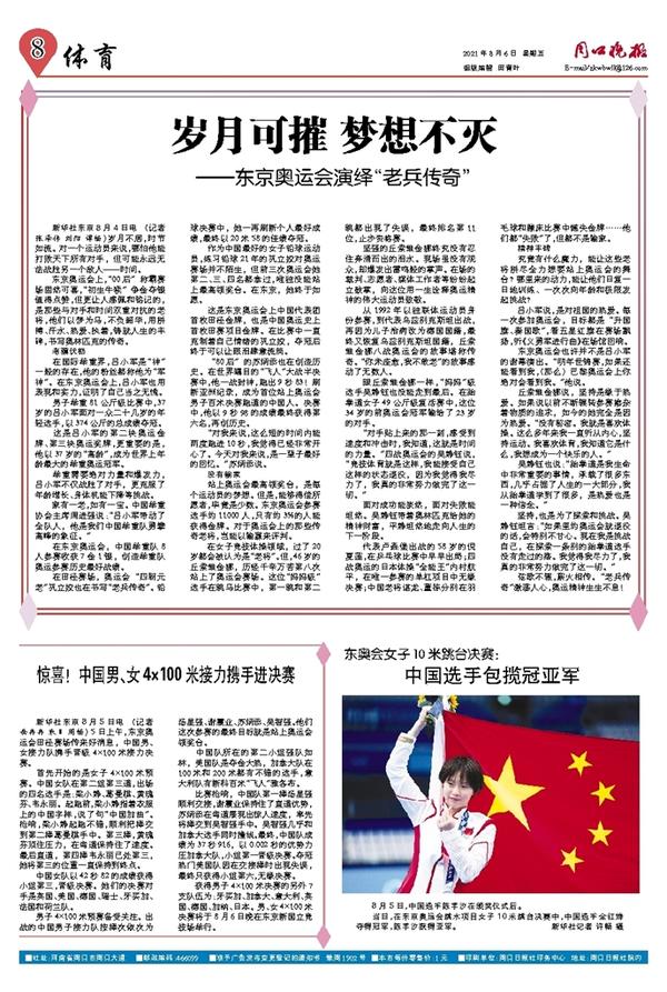 东京奥运会上,“00后”称霸赛场固然可喜,“初生牛犊”争金夺银值得点赞,但更让人感佩和铭记的,是那些与对手和时间双重对抗的老将,他们以梦为马,不负韶华,用拼搏、汗水、热爱、执着,铸就人生的丰碑,书写奥林匹克的传奇。