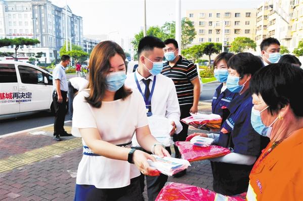 当日早上6点半,万基地产总经理赵玲玲早早赶到公司,与公司高层和普通员工一起,将捐赠物资装车,准备分发给值守在一线的环卫工人。