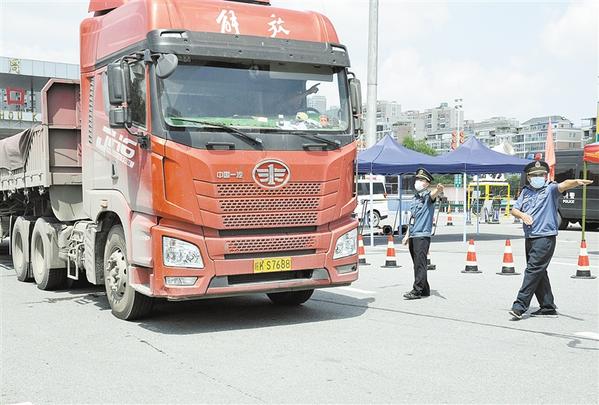 8月18日上午,商水县交通、交警、卫生等部门的值勤人员在宁洛高速周口站出口处,严查驶入车辆,认真登记车辆和人员信息。疫情防控工作开展以来,商水县紧盯高速公路、国省干线公路、乡村公路与外市相连接的出入口,按照“有专班、有测温、有扫码、有记录,知去向,留轨迹”的标准要求,严格落实各项防控措施,扎紧篱笆、严防死守、严控输入,坚决避免出现失管漏控。记者 付永奇 摄
