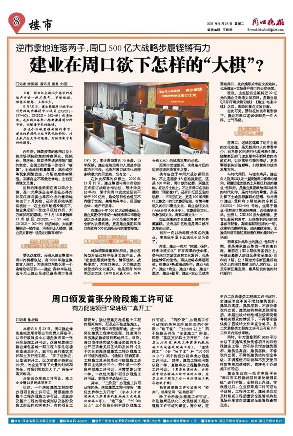 8月18日,建业集团周口城市公司竞拍成功摘得中心城区ZK2021-(57-60)、ZK2021-(62-64)优质地块。这如同兴奋剂一样刺激着周口的市场,点燃着市民的激情。