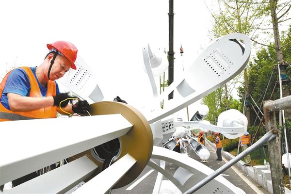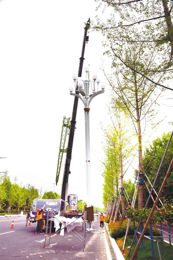 近日,路面改造后的周口大道北段又有了新变化,从周口北高速收费站至太清路口,正在安装芙蓉中华灯,每个灯杆上的灯托造型如芙蓉花开,安装有8支LED节能灯,夜晚如群芳绽放,一路花灯璀璨,预计国庆节前迎来亮灯。③8