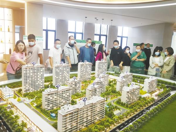 营销中心二楼是江山汇项目展示区。记者看到,沙盘区、洽谈区被熙熙攘攘的访客团团围住,大家都在兴致勃勃地听置业顾问讲解,对江山汇项目的区位、产品配套有了更深认识。