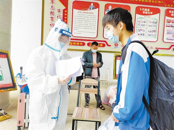 查验健康码、行程码,排队测体温,出示14天健康证明、48小时核酸检测阴性证明及新冠疫苗接种证明……当日上午,在周口二高门口,高三学生按照学校划定的通道,间隔一米排队,有序通过测温仪、消毒等程序后顺利返校。
