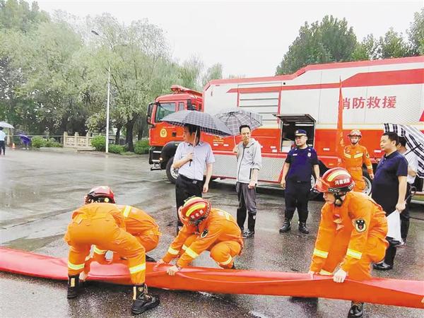 水利部门提前做好黑臭水体治理、水系综合治理、沙颍河城区段治理等涉水工程应对准备工作,加强河道闸门调度及防汛物资储备。提前对水闸等各类水利设施运行状况进行检查,贾东干渠渠首安排专人值守,沙颍河南干渠闸、示范区液压坝及时有效运行,及时疏浚排水路径,保持河道行洪畅通。