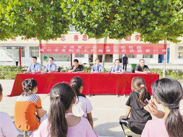 本报讯 为深入贯彻最高检和省院“把法治教育向偏远乡村倾斜”的要求,让法治教育惠及更多的农村留守儿童,9月9日,淮阳区人民检察院法治宣讲团在第五检察部主任梅芳带领下,走进淮阳区临蔡一中,给这里的孩子们上了一堂有趣、丰富、实用的法治课。