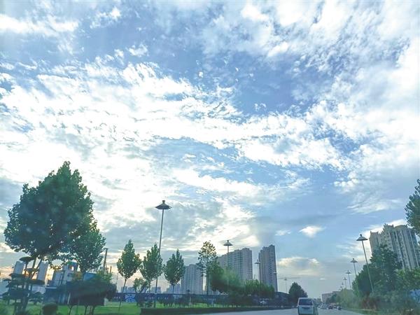 近日,周口城区上空频现蓝天白云奇景,漫天都是朵朵白云,一团团、一簇簇,在干净的蓝天衬托下分外美丽。许多市民拿出手机去定格这美丽的瞬间。①5