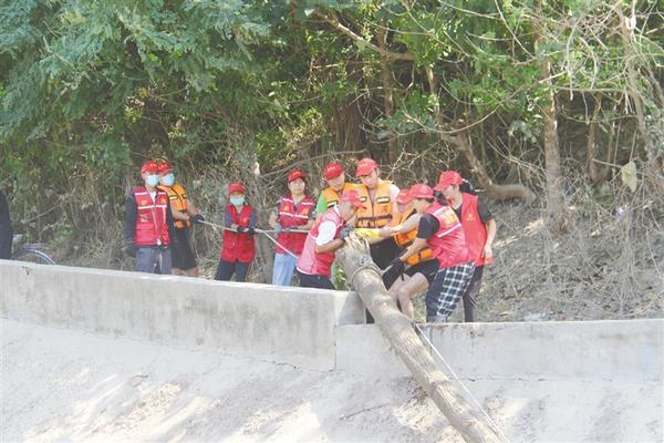 9月13日上午,在周口市中心城区贾鲁河二板桥下,周口市慈孝文化促进会十几名志愿者齐心协力从河里拉一棵长约12米,直径宽约20厘米的枯树,枯树被捞起的那一刻,堵塞的河水变得畅通了不少。
