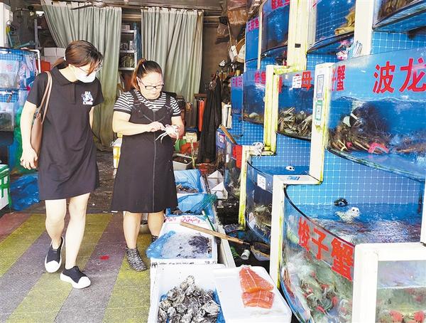 9月16日,市民在海鲜市场挑选海鲜。中秋节将至,我市海鲜市场各类生猛海鲜种类齐全,蟹、虾、贝类等海鲜很受巿民青睐,尤其是蟹成为市民的首选,这将给海鲜市场带来新一波消费增长。③3记者 孙安平 摄