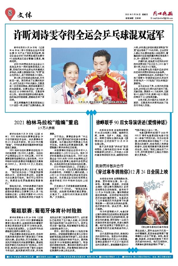 本报综合消息 由薛晓路执导,黄渤、贾玲领衔主演,朱一龙、徐帆、高亚麟、吴彦姝、许绍雄主演的《穿过寒冬拥抱你》发布定档预告及定档海报,宣布将于12月24日全国上映。擅长情感刻画的薛晓路,这回把视角拉回到武汉封城的凛冽寒冬,电影讲述了几对普通武汉市民疫情下的爱情故事——面对突如其来的疫情,他们积极乐观、彼此支持,真实又温暖。