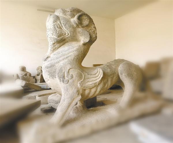 刘崇墓中还出土了一些较为精美的石雕文物,如石俑、石仓楼、虎形石座、狮形石座、双兽石座、石凭几、石天禄子盘、石鸡、石猪等十多件。这些石雕雕工十分精美,形象逼真,有的有线刻纹饰,特别是天禄承盘——天禄立于圆座之上,张口怒目,背生双翼,长尾卷曲,背上立一圆柱,柱顶出四个斗拱,上托圆形盘,造型十分别致,曾参加比利时出土动物展,现存河南省博物院。