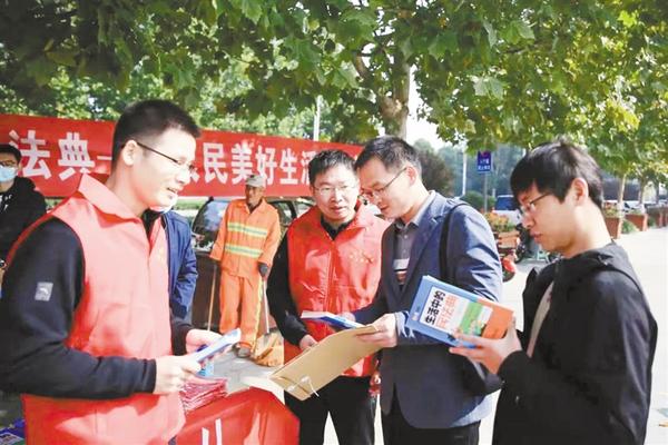 本报讯 为进一步提高民法典的群众知晓度,营造全社会尊法、学法、守法、用法的浓厚氛围,10月23日,周口市司法局组织“八五”普法志愿者在周口市中心城区昌建广场开展以“美好生活·民法典相伴”为主题的普法宣传活动。