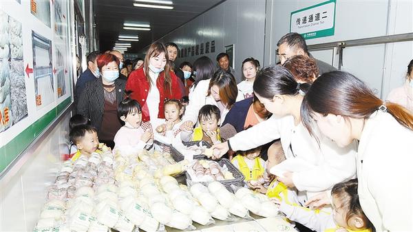 10月27日,万果园商业连锁生鲜加工物流中心迎来一群小朋友,他们在家长和工作人员的带领下走进生产车间,兴致勃勃地参观了面条、豆芽、馒头等食品生产加工过程。通过此次活动的开展,开阔了小朋友的视野,也引导他们从小养成节约粮食的好习惯。②13记者 张洪涛 通讯员 吴瑞珂 摄