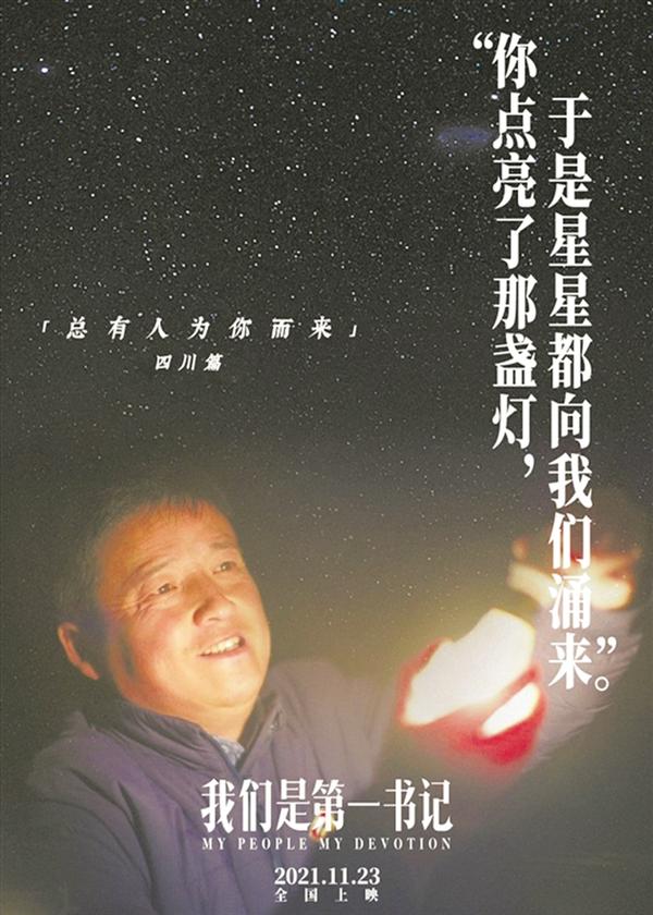 由任杰执导的电影《我们是第一书记》11月8日发布四川篇“为你照亮”版故事海报和特辑。该片以新闻素材为依托,是奋斗在脱贫攻坚一线的第一书记们的“情感记事簿”。作品拟于11月23日全国上映。