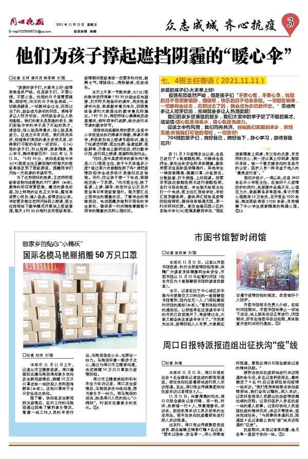 周口市卫健委疾控科科长宋全力告诉记者,周口发生疫情后,马艳丽多次与他沟通,想为家乡尽一份力。用马艳丽的话说,她是周口人民的贴心“小棉袄”,时刻关注着家乡的变化。③6