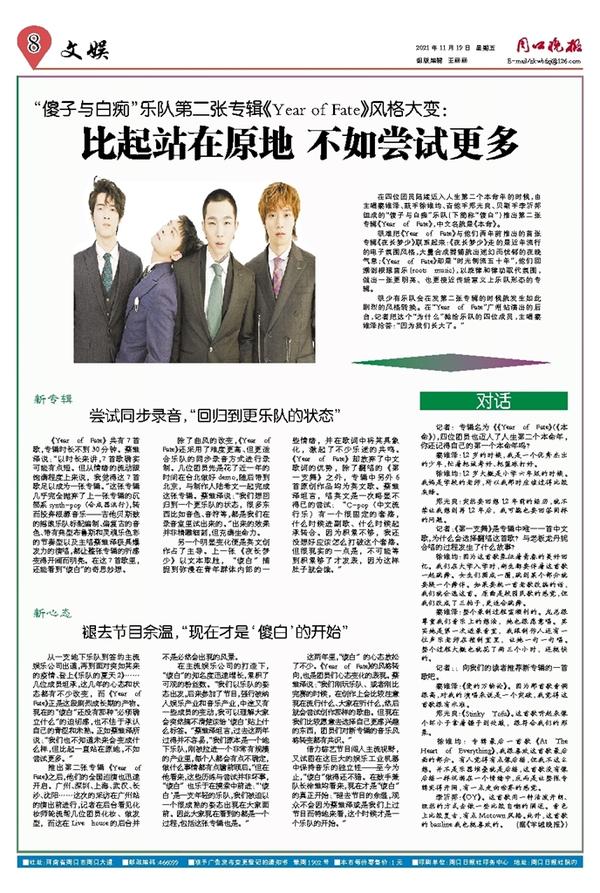 从一支地下乐队到签约主流娱乐公司出道,再到面对突如其来的疫情、登上《乐队的夏天2》……几位成员坦承,这几年的心态和状态都有不少改变,而《Year of Fate》正是这段剧烈成长期的产物。现在的“傻白”还没有那种“必须确立什么”的迫切感,也不怯于承认自己的青涩和未熟。正如蔡维泽所说:“我们也不知道未来会变成什么样,但比起一直站在原地,不如尝试更多。”