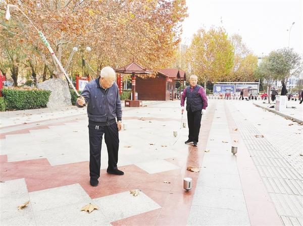 11月23日下午,周口经济开发区人民广场上,不少市民在玩陀螺。据刘师傅介绍,现在的陀螺各式各样,大家打陀螺不仅为了好玩,主要是锻炼身体。②3 记者 孙安平 摄