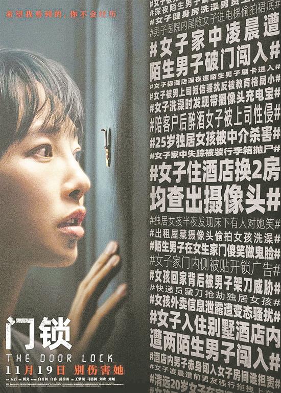 密码锁上混乱的指纹、沾上水渍的卷纸,消失的冰箱食物……《门锁》前半部用种种悬疑感十足的细节,让观众代入了独居者方卉的惶恐不安。这正是影片反复营销的立意:关注独居女性安全问题。主演白百何本人也曾在接受采访时提及自己在接到剧本后,曾关注过相关数据:中国2021年独居人口约9200万,其中40%左右是女性。她还曾表示,希望观众把这部《门锁》看成“独居安全指南”。