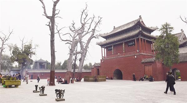 一是加深环境层次。坛庙占地很大,但建筑相对较少。主体建筑布置在中心部分,外面有多层围墙并满植松柏树。人们在到达主体以前必须通过若干门、墙、甬道,周围又是茂密的林木,这就加深了环境的层次,加强了严肃神圣的气氛。