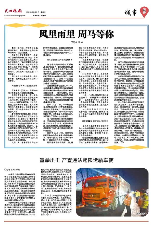 有人笑称今年的周马更像是关起门来办给周口跑友的一场比赛。对此,周马组委会一位负责人真诚回应:“和外地很多马拉松比赛不同,周马更像是在周口市委、市政府和相关职能部门支持下,由周口跑友、志愿者通过热爱、通过奉献办起来的一场公益活动。打开门,我们和四海宾朋同跑同乐,它是对外宣传推介周口、传播慈善理念的窗口。关上门,周口跑友可以‘自娱自乐’,它是推动周口全民健身、慈善事业发展的平台。‘简办’而不停办回应了周口跑友的关切,满足了周口跑友的期待,也是想对外界释放一个信号:风里雨里,周马一直都在,条件允许的话,欢迎大家来到周口参加比赛。”②3