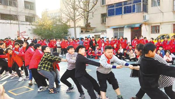 12月3日,周口李庄小学两个校区同步举行2021年度冬季趣味运动会。主要项目有跳绳接力赛、跳单双圈往返接力赛、抢收抢种、拔河比赛等,同学们你争我夺,奋力拼搏,尽显风采,进一步促进学校阳光体育运动的开展。